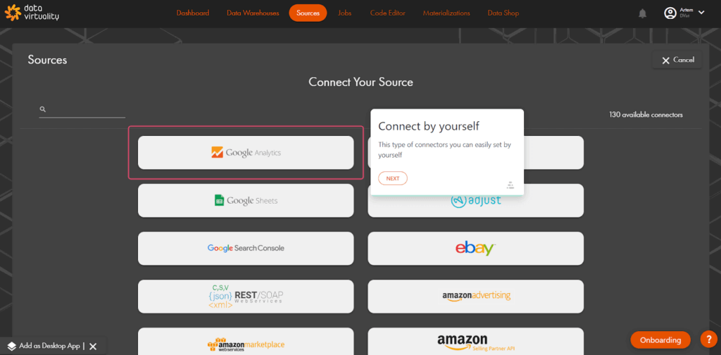 The new update will have an improved user experience. With the Stonly integration, onboarding is now even more tailored to what the user needs to get started in CData Virtuality SaaS.