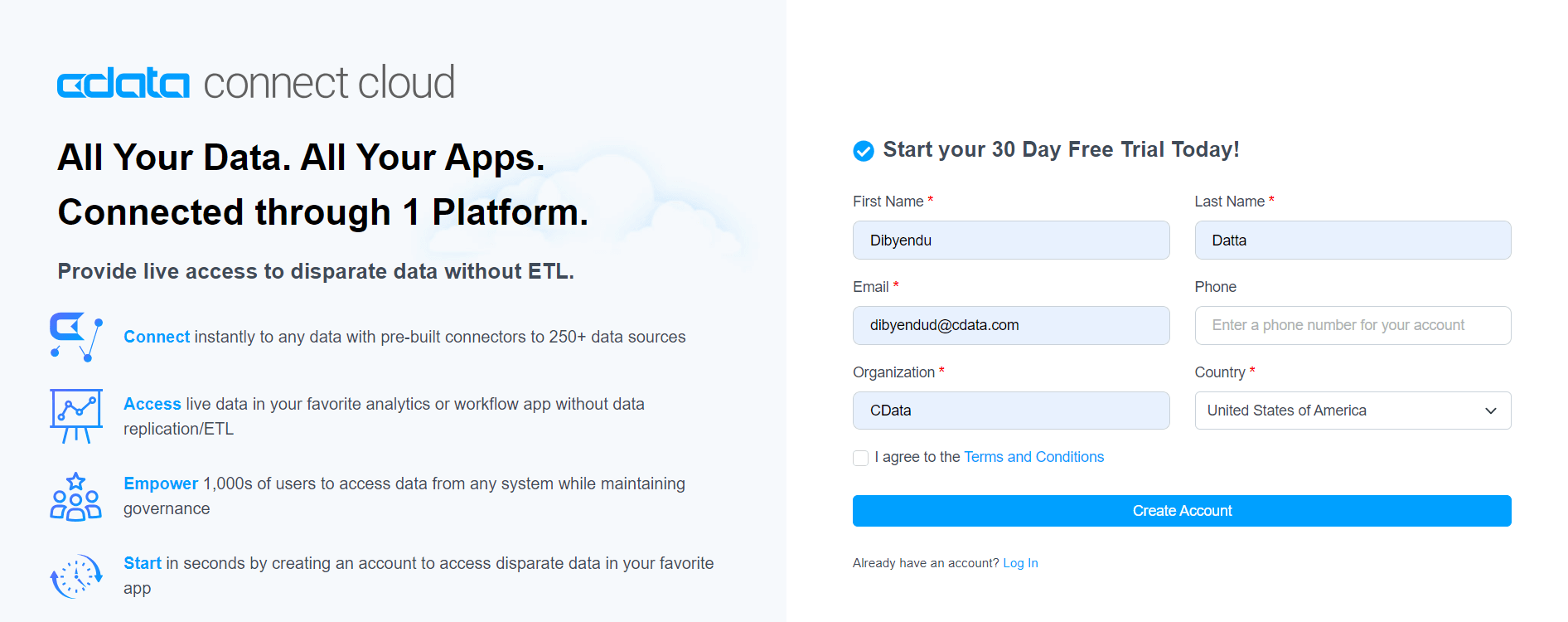 Visit the CData Connect AI website and create a CData Connect AI account.