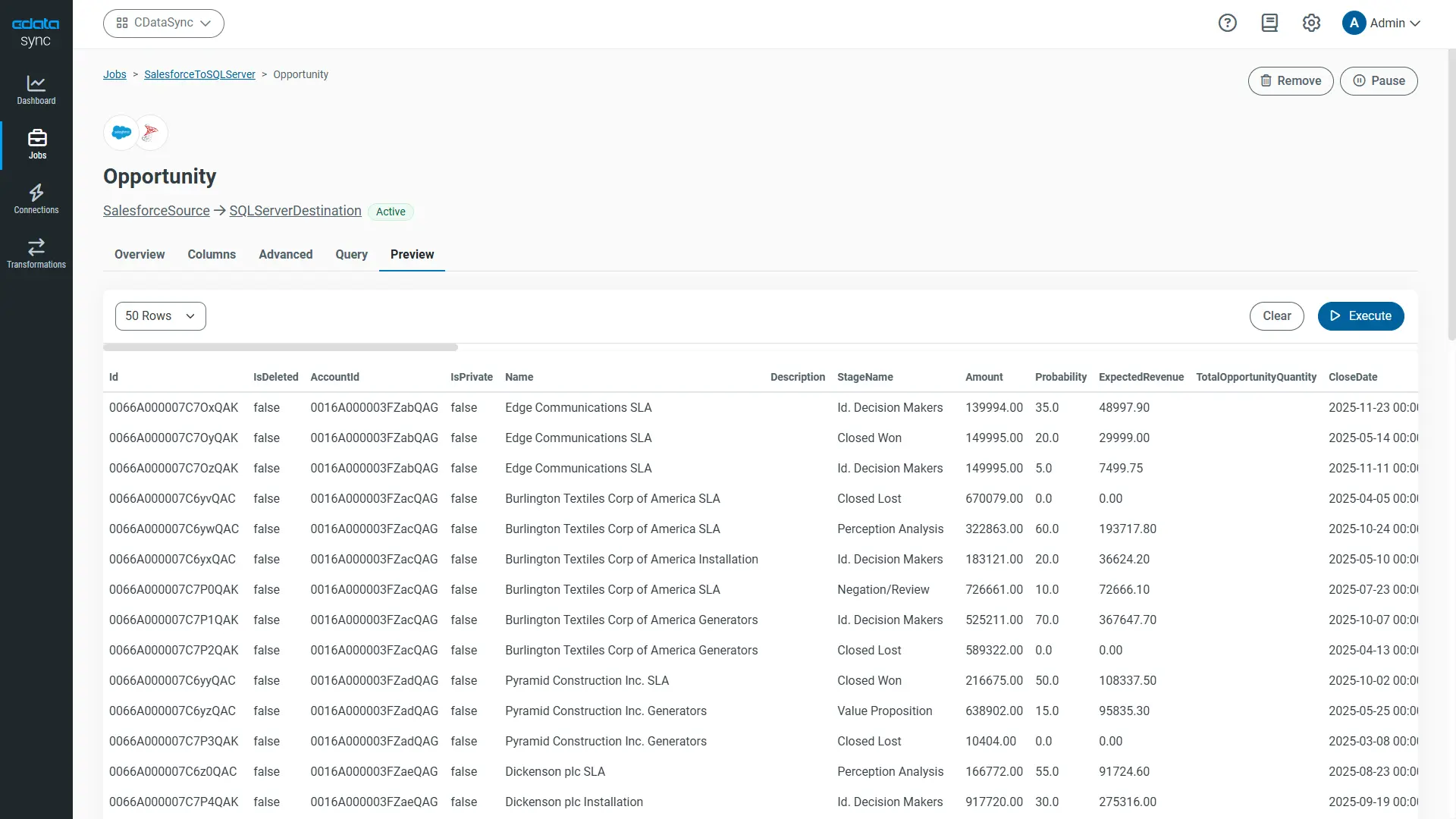 Time-saving tip: Sync’s UI allows test connections, schema previews, and job templates to speed up configuration.