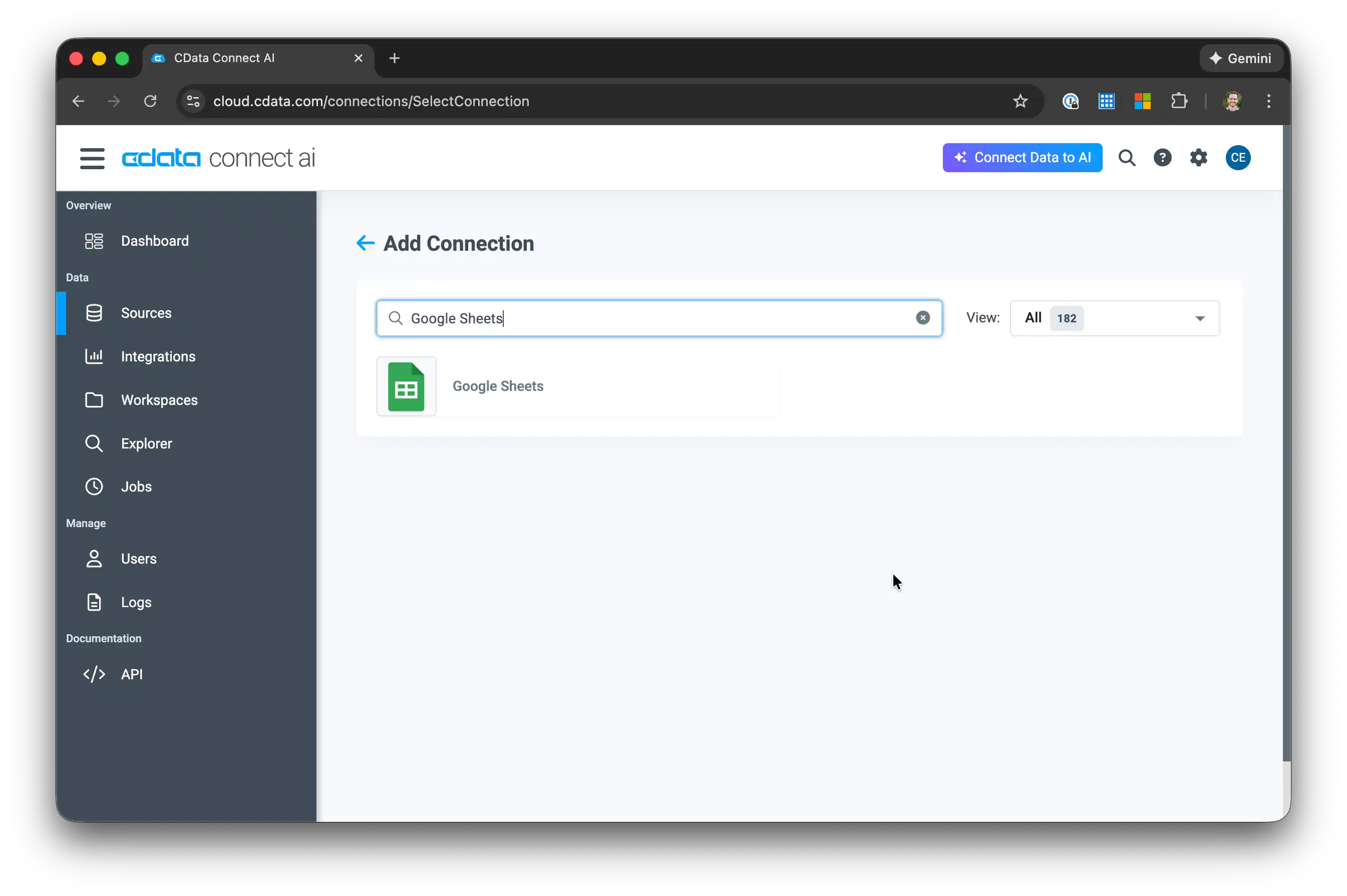 NOTE: While this guide uses Google Sheets as the data source, the same principles apply to any of the 350+ data sources CData Connect AI supports.