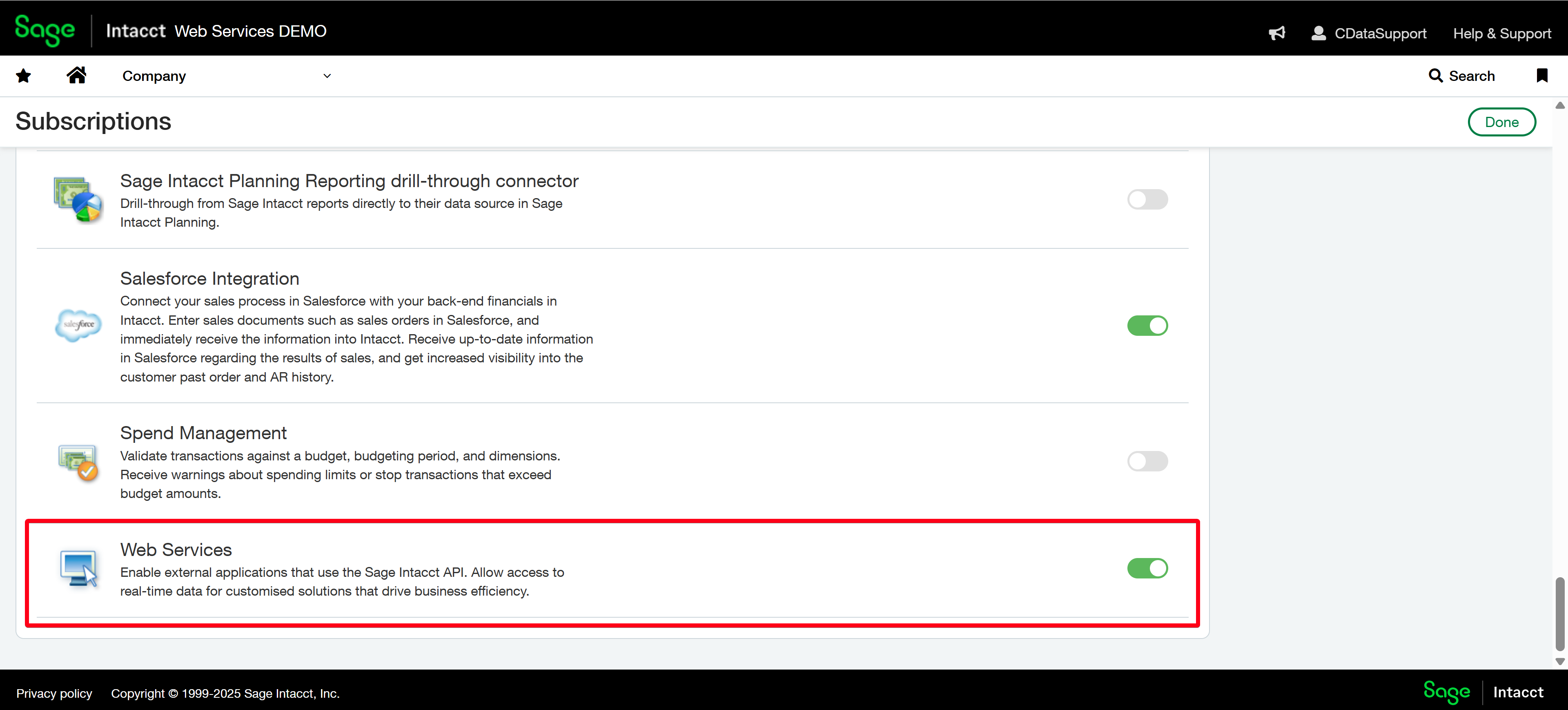 - Enable the Web Services subscription.