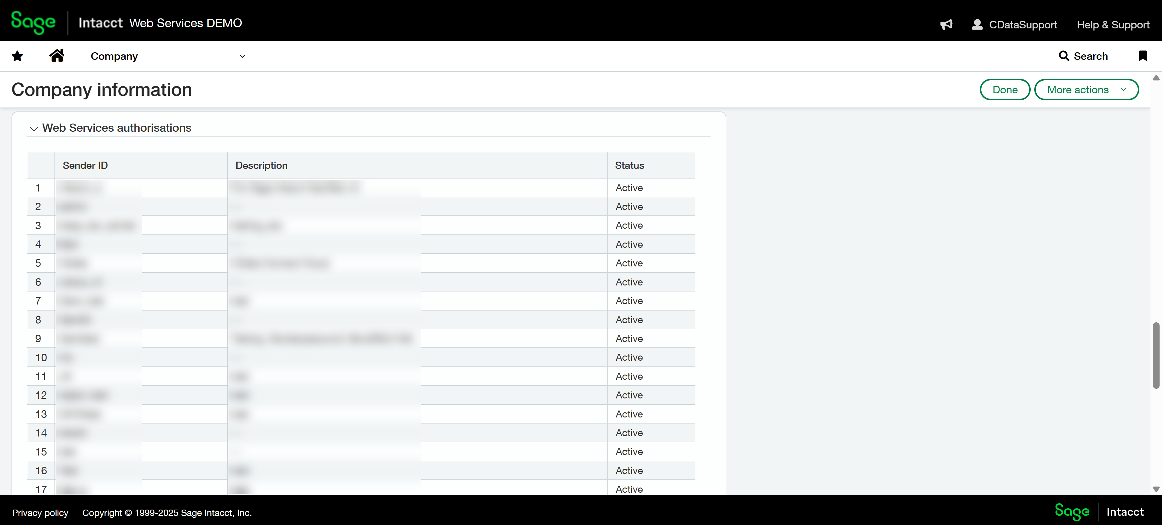Sage Intacct now requires that CData Sync, CData Connect AI, and CData Embedded customers accessing the Sage Intacct API use their own Web Services Sender ID and Password.