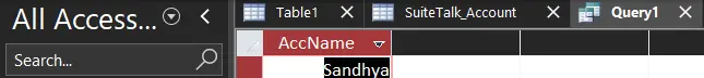 - Access returns the results in datasheet view, pulling live data directly from NetSuite