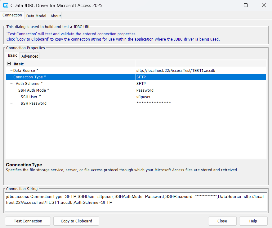 | DataSource | sftp://AccessTest/TEST1.accdb |