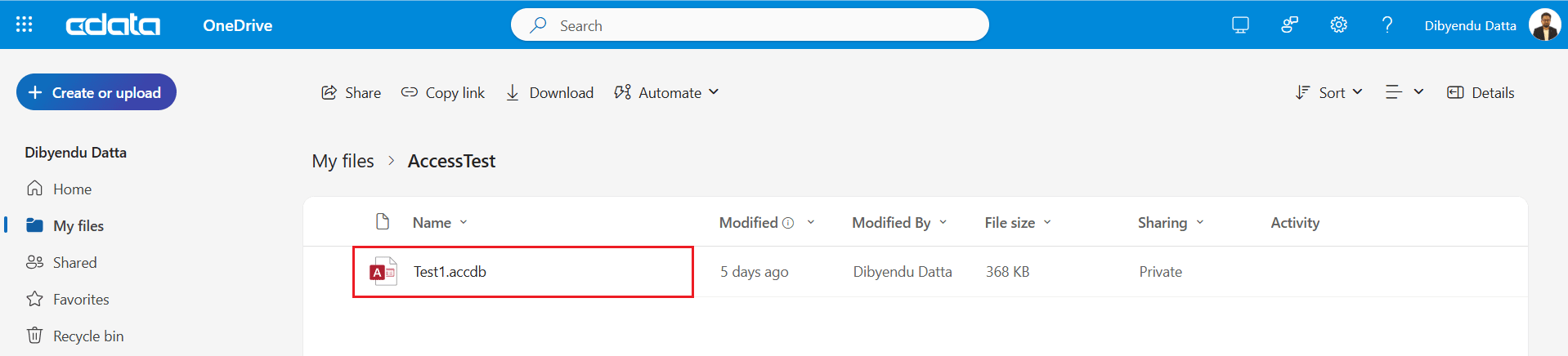 | DataSource | onedrive://AccessTest/TEST1.accdb |