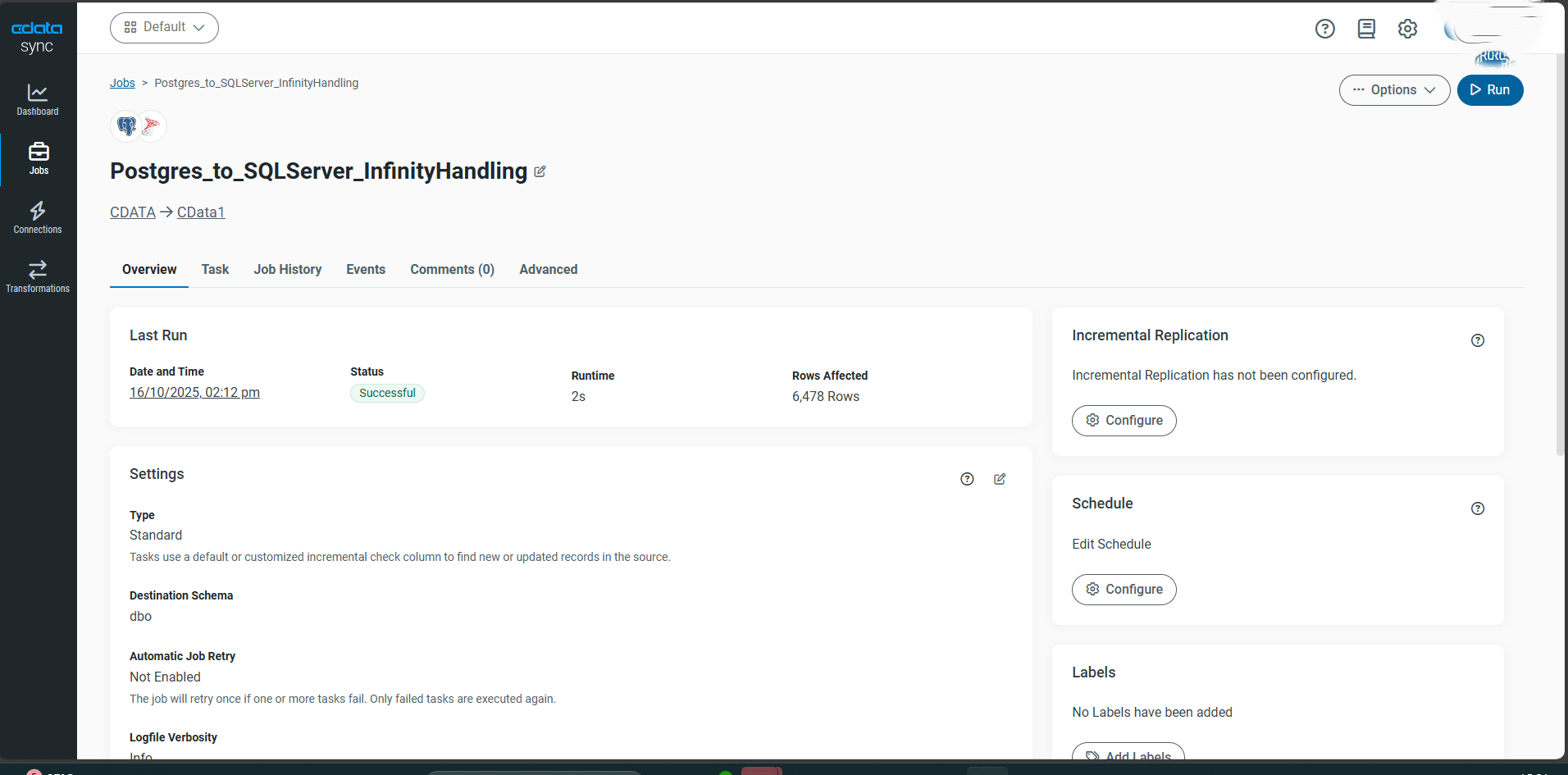 - Enter a job name, for example Postgres_to_SQLServer_InfinityHandling