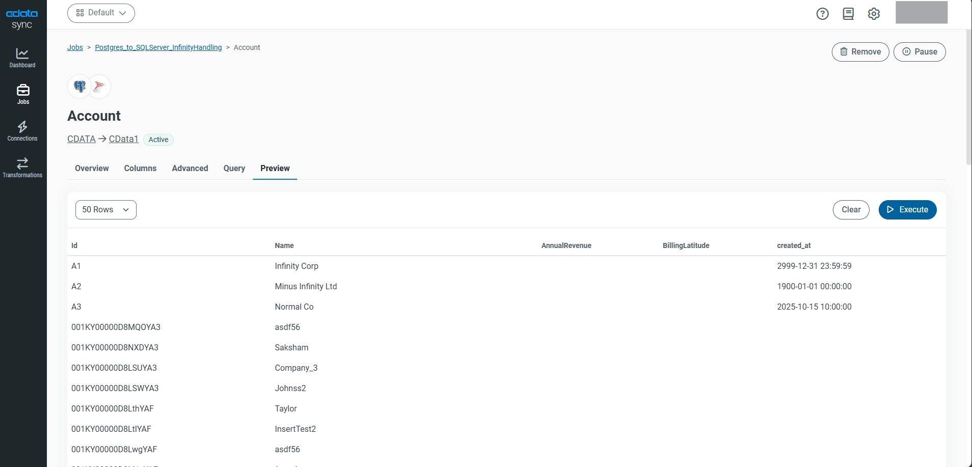 CData Sync solves this by allowing users to transform these special infinity values into standard finite values using configuration options or custom queries, ensuring easy data integration across systems.