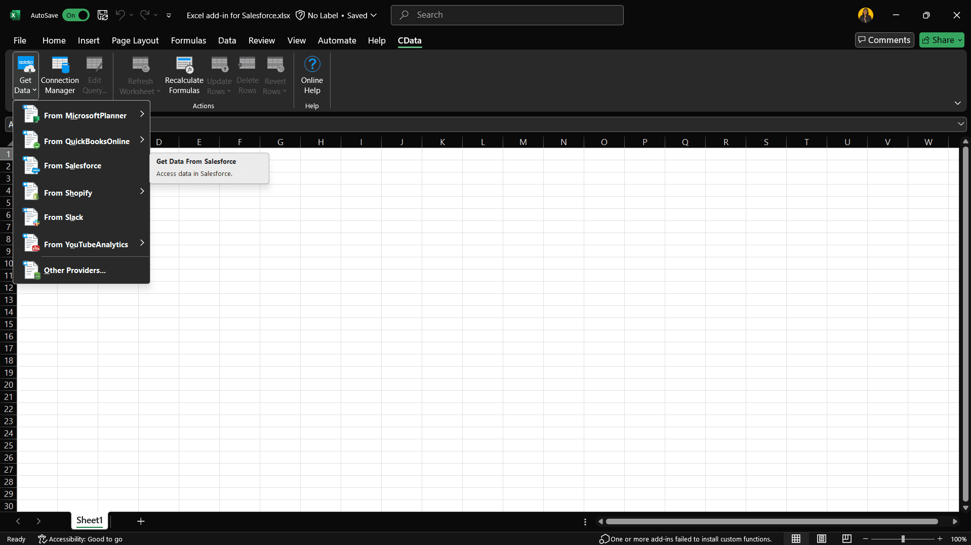 The CData API Server offers standards-based web service endpoints that allow a variety of applications to get data from Salesforce. These endpoints expose data as OData, RSS, HTML, CSV, ATOM, SOAP, JSON, JSONP, and TSV. In this article, we will use the CSV format to import Salesforce data into Microsoft Power Query.