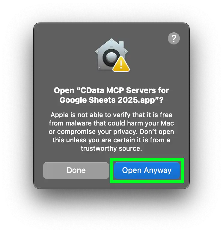 After installation, you can open the CData MCP Server for SharePoint Excel Services from the Applications folder on your mac