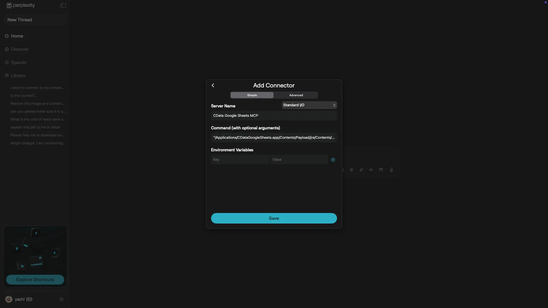 With your MCP Server configured, you are ready to connect it to Perplexity Desktop.