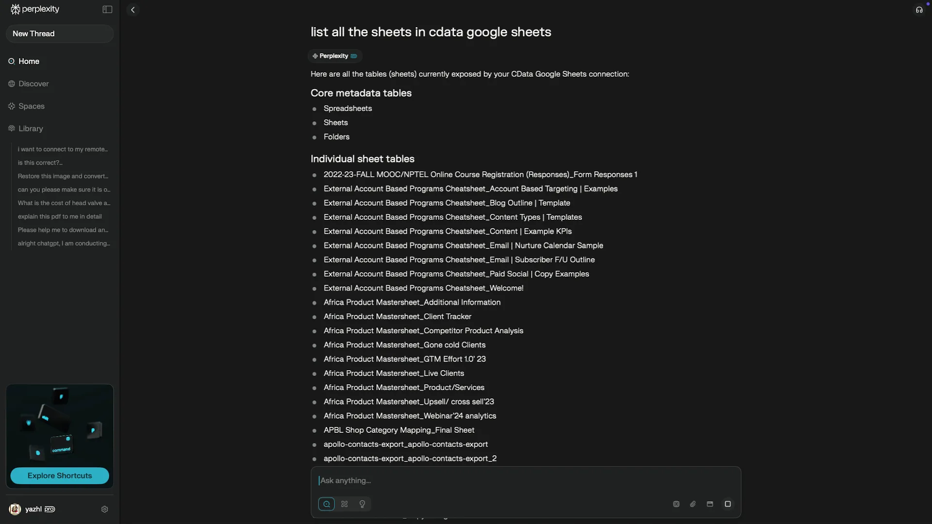 Step 4: Query Your Live SharePoint Excel Services data in Perplexity Desktop