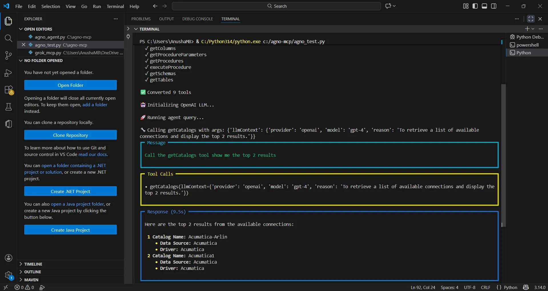 Each MCP tool is wrapped as an Agno function so it can be used by the agent.