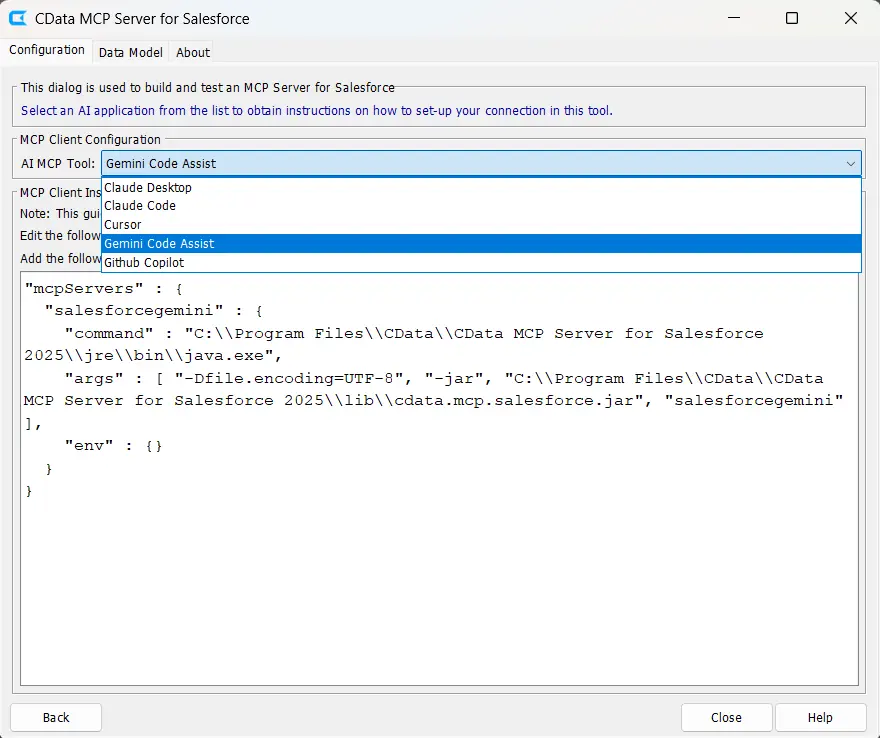 Select Gemini Code Assist from the AI MCP Tool dropdown