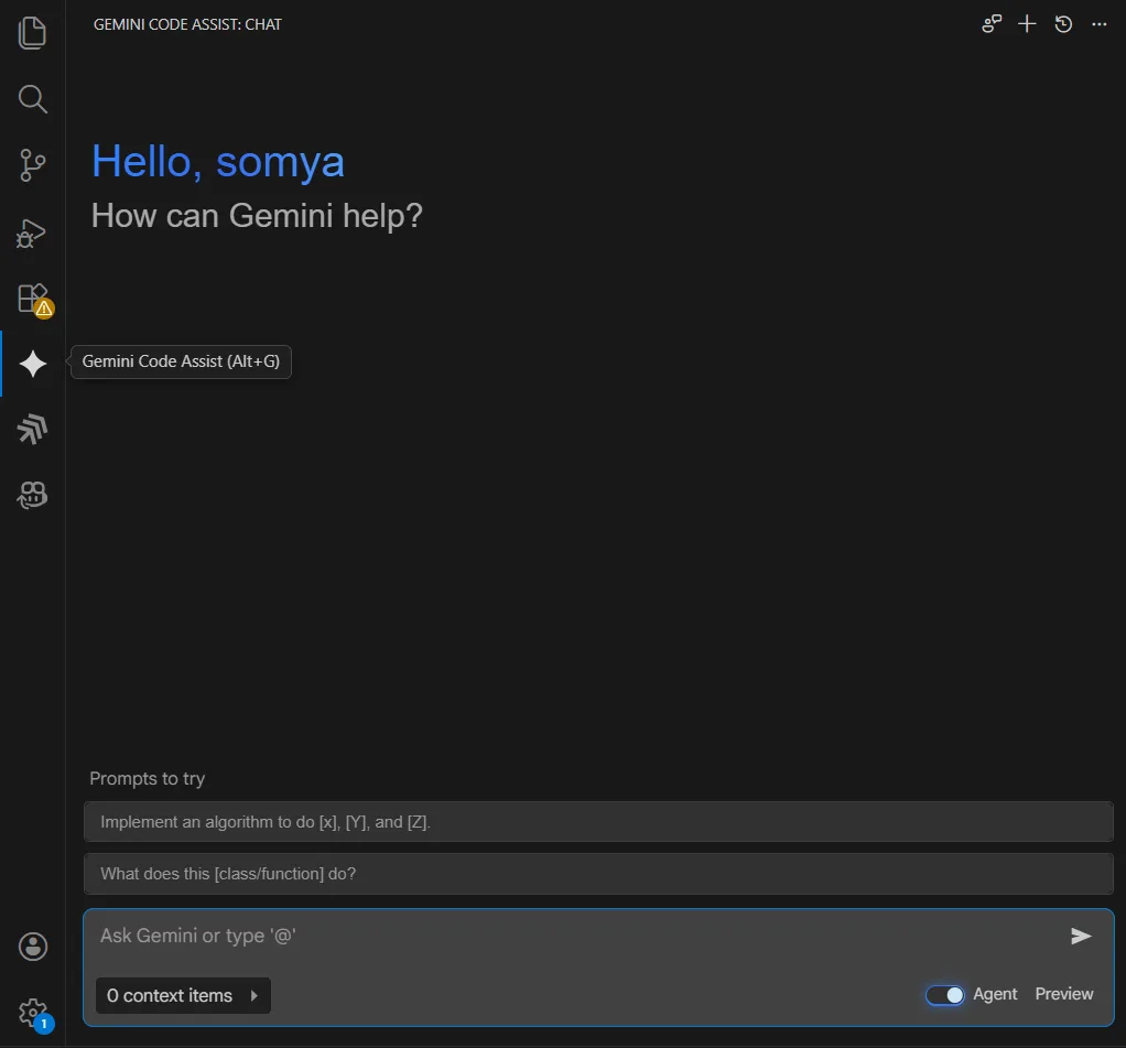 - Ensure Visual Studio Code is installed and the Gemini Code Assist extension is enabled