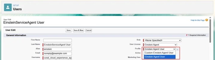- Update the Profile to Einstein Agent User