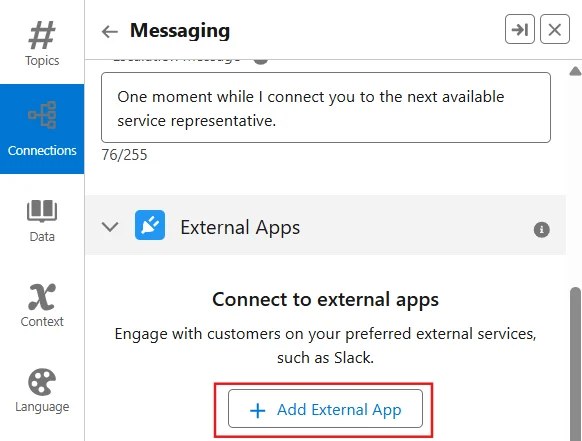 - Add Connections select Needs Setup click on Add External App