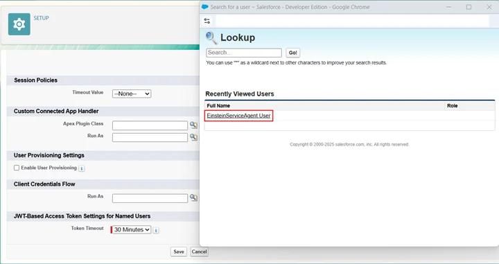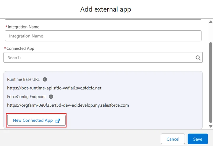 - Finally, return to your Agent Connection and select this Connected App, and click Save