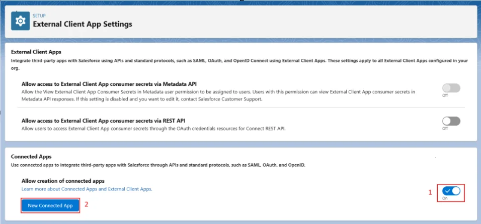 - Allow creation of Connected Apps