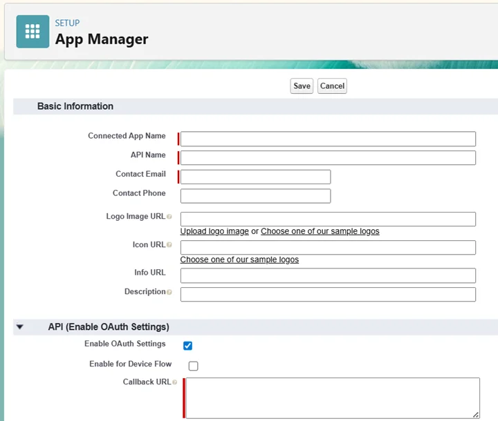 - Enable OAuth Settings with Callback URL: https://login.salesforce.com