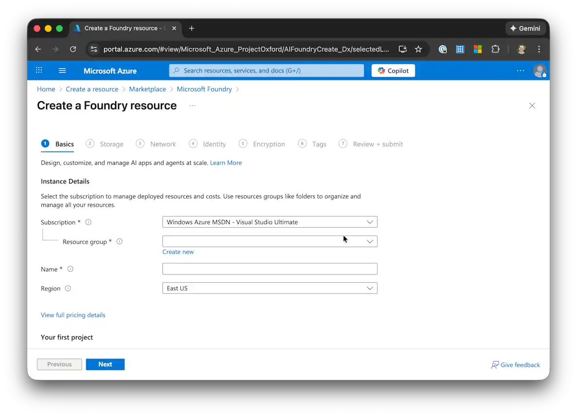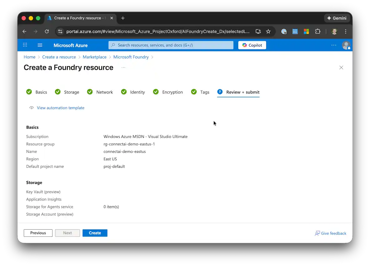 Before connecting to SharePoint data, you'll need to create an Azure AI Foundry resource in your Azure portal.
