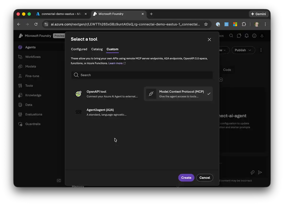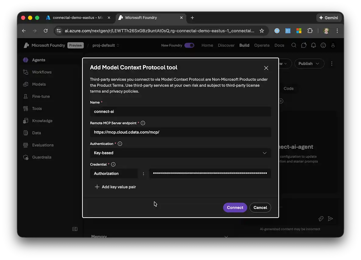Now you'll add the CData Connect AI MCP Server as a custom tool for your agent: