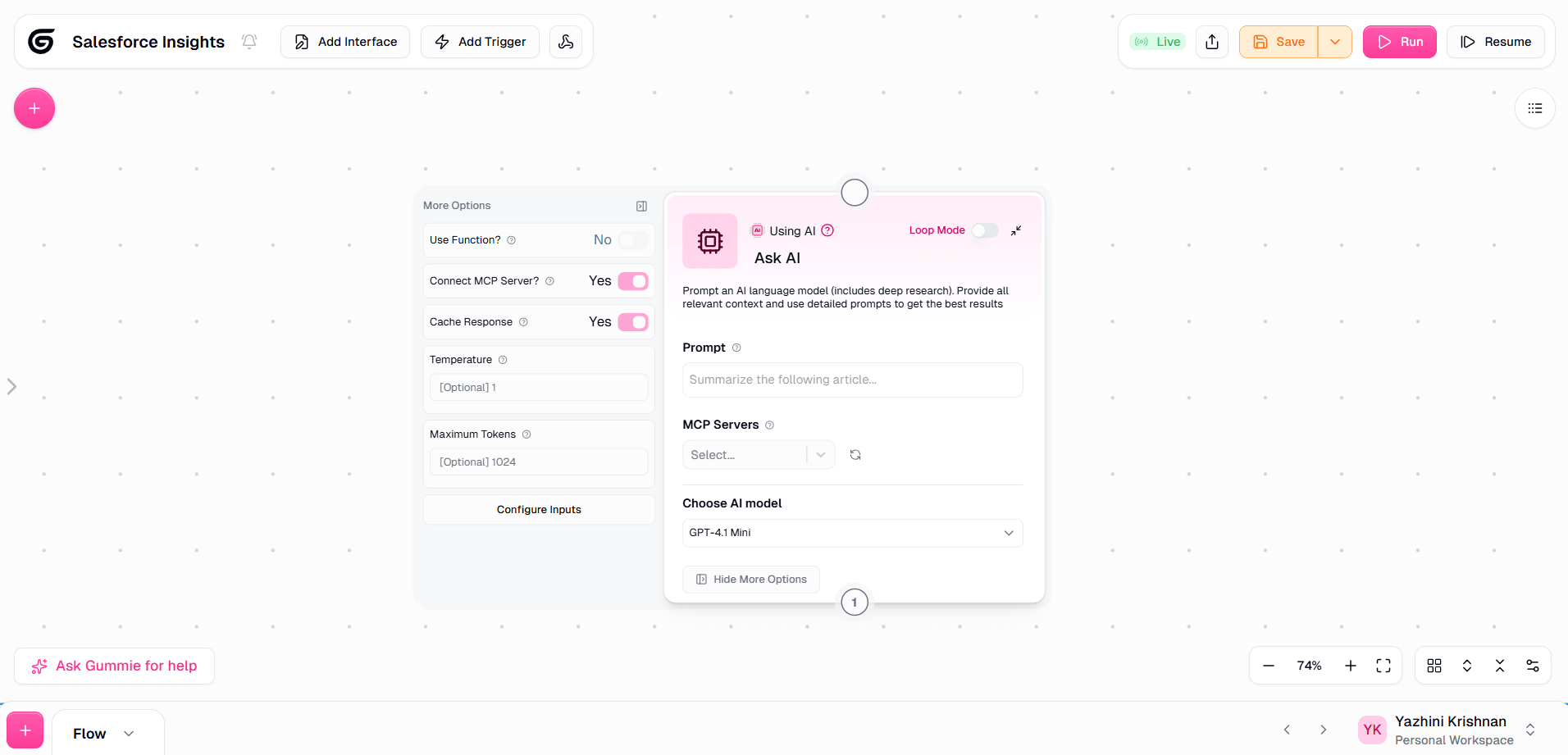The MCP server is now available to build workflows in Gumloop.