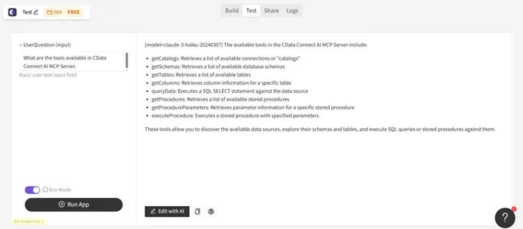 chatbot = MCPAgentChatbot(MCP_SERVER_URL, CDATA_EMAIL, CDATA_ACCESS_TOKEN)