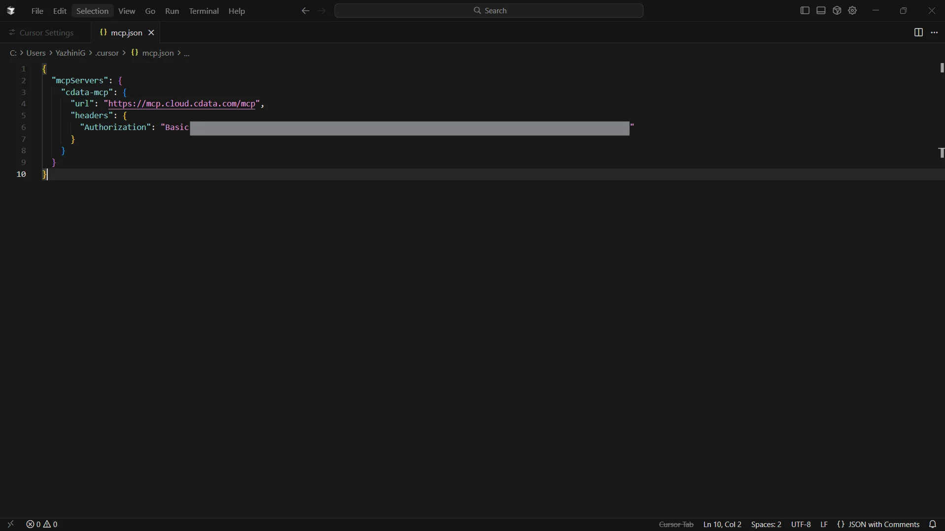 Step 2: Configure the CData MCP Server in Cursor