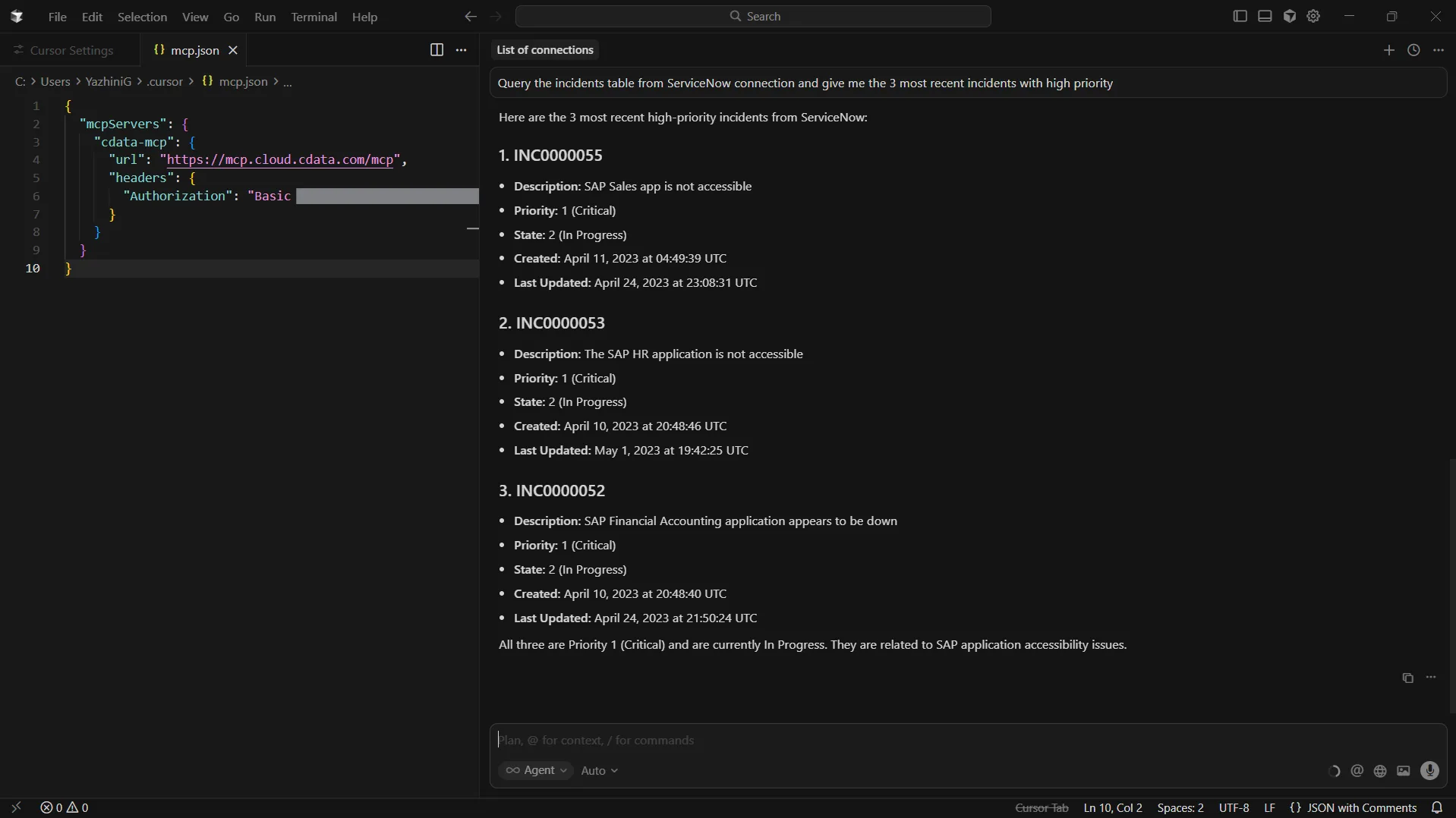 Step 3: Chat with CData Connect AI from Cursor