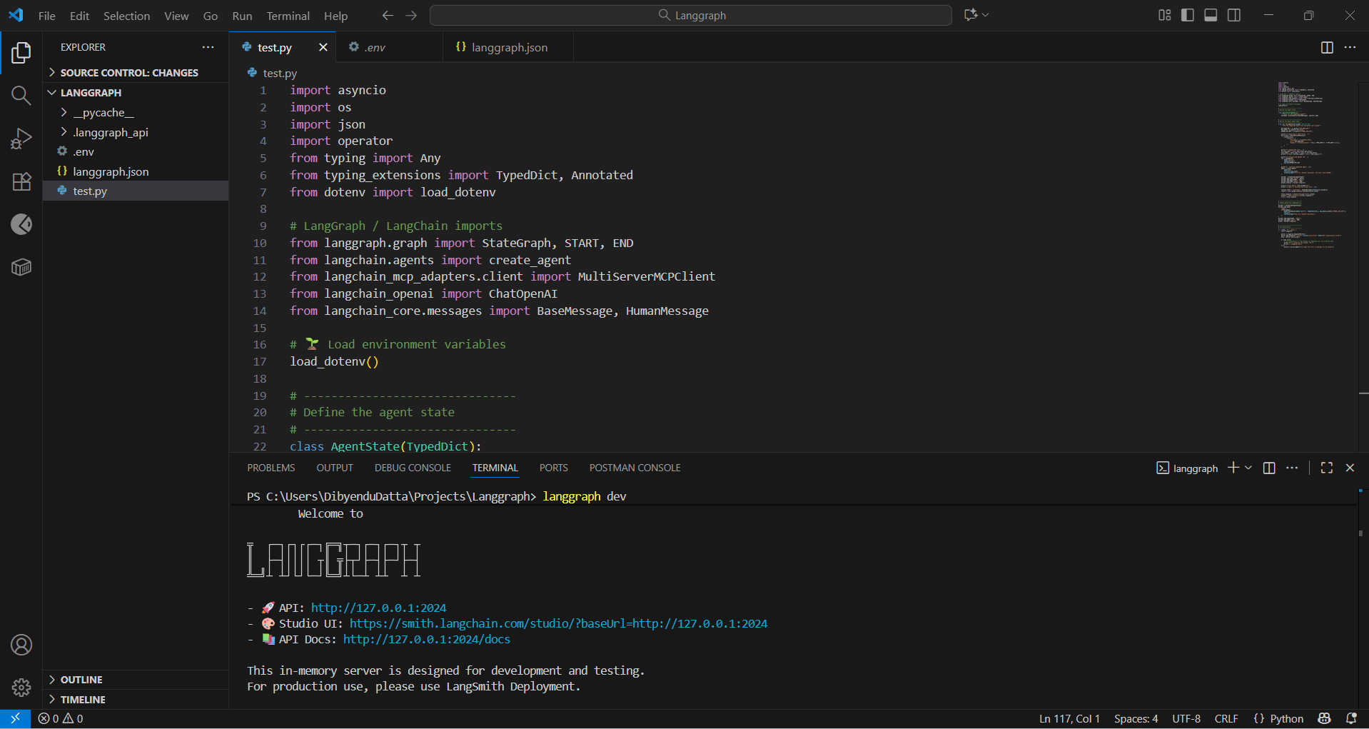 Create a new Python file named test.py inside your LangGraph project folder.